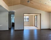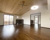 本物件は、大日向グラウンドのすぐ近くに建つ平屋。落ち着いた外観の建物は、自然と調和した穏やかな美しさを感じさせます。平屋住宅の魅力は、なんといっても「ワンフロアで暮らせる」ということ。どの部屋にいても自然とふれあうことができ、家族をいつも身近に感じて暮らすことができます。階段を使わないため、家事導線もシンプルに移動も楽に生活が可能です。また、大屋根の深い軒の出の下、暑い夏も涼しく過ごせるのも平屋ならでは。昔は老後を考えた時にフラットな住まいとして人気があった平屋は今、若い人にもゆとりをもった実用的な住まいとして人気急上昇中です。敷地が広いからこそできる、贅沢な住まいなのです。また、本物件には床暖房が完備されていますが、薪ストーブを設置できるスペースと、煙突も備わっているので、薪ストーブ設置もおすすめです。