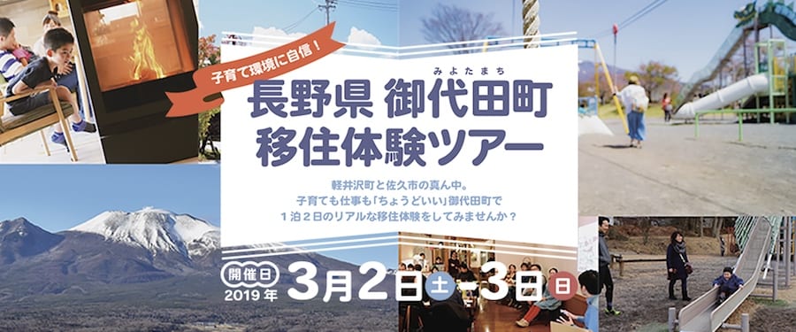 軽井沢・御代田町の移住イベント 御代田町主催!1泊2日で冬の”リアルな暮らし”を実感する移住ツアー第二弾開催! 2019年2月4日 子育て世代に人気の移住先、御代田町(みよたまち)で 冬のリアルな暮らしを実感する2日間 軽井沢と佐久市の間に位置する長野県御代田町。 この町は、昔から移住者を多く迎え入れてきた歴史があり、今では、0~19歳の人口数が東信... リグプラス編集部 もっと見る