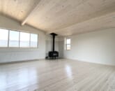白を基調に広々明るく開放的なリビングは、階段を上がって2階に。人目を気にせずゆっくりと寛げるのが嬉しいところです。そのままインナーデッキまでフラットに繋がるので、空間に広がりが出て視界も広々。過ごしやすい気候の時期は、デッキにソファやクッション、お気に入りのアイテムをおいて、自由気ままな時間を過ごしてみるのはどうでしょうか。北側隣地は平屋の建物の為、2階リビングから浅間山が見えるという嬉しいポイントもあります。