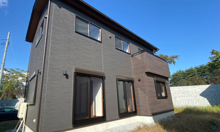 黒い外観がかっこいい、角地にある本物件。建物横にちょっとしたプライベートな庭があります。間取りは広々4LDK。LDKの横に続きで洋室がひとつあって、キッチンからよく見えるので声かけもしやすく、お子様のおもちゃや勉強机を置くのにいいかもしれません。クローゼットが多くあるのもこの家の特徴で、各部屋にあるのはもちろん、二階の廊下にファミリークローゼットまで完備。クリスマスツリーや五月人形、お雛様など、季節ものもたっぷり収納できます。