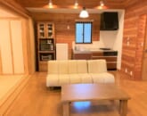 室内はログハウスを思わせる、天然木をふんだんに使い、木の温もりを感じさせる洋室とリビングダイニングキッチン、さらに嬉しい和室も完備。フルフラットなユニバーサルデザインで3室が続いているため、空間に広がりを持たせ、年齢を重ねても快適に過ごせるように設計されています。草木が芽吹く春先から萌ゆる新緑の季節、また紅葉の時期など、自然が魅せる美しさと癒しのひとときをこの別荘で楽しんでみませんか?