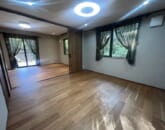 追分の軽井沢中心地に位置する平屋の別荘が誕生しました。国道18号線へのアクセスが便利で、周辺にはコンビニやスーパーもあり、日常の買い物に便利な環境が整っています。コンパクトな外観ながらも、内部は広々とした使い勝手の良いレイアウトが特徴で、ゲストルームやリビングの拡張など、多彩な使い方が可能です。主張しないアースカラーのキッチンは、落ち着いた雰囲気を醸し出し、家族や友人との楽しい時間を演出してくれます。夜にはみんなで映画鑑賞が楽しめるプロジェクター完備のリビングがあり、くつろぎのひとときを過ごすことができます。