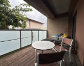 利便性が良いとなると、その反面で心配なのが、騒音や人通りの多さではないでしょうか。こちらのマンションは敷地にゆとりを持って建てられており、居住空間からは、大通りの騒音がほとんど感じられないのが魅力です。また、バルコニーからは敷地内の緑が感じられ、ゆったりした開放的な暮らしも叶います。それぞれのマンション棟も余裕を持って配置されているので、プライバシー確保もばっちり。オートロックや24時間稼働のセキュリティシステム、防犯カメラなど、充実したセキュリティシステムは別荘として利用する人にも好評です。