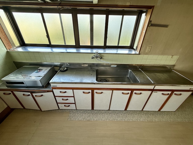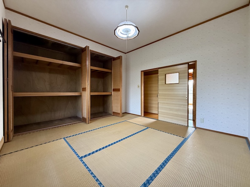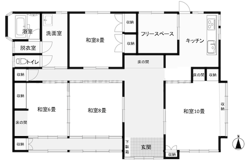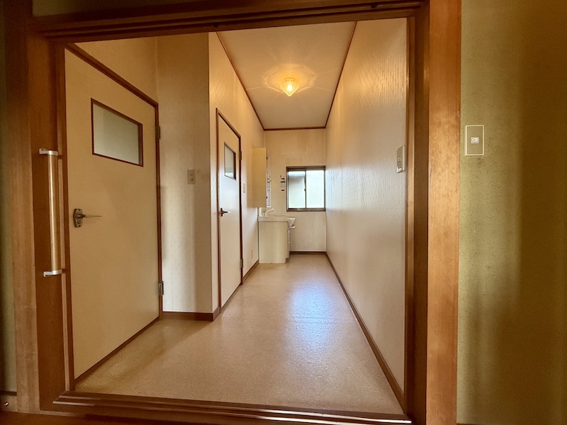 間取りをあまり変えずに住むのであれば、部屋数の多さを活かした多目的ハウスにするのもあり。二間続きの和室は、一方をモダンな畳を入れた和室に、もう一方はフローリングにして全体を和モダンテイストにするのも面白そう。北側の一室は独立した部屋なので、白い壁にプロジェクター投影してシアタールームにするなど、”古さ”ではなく”レトロ感”をあえて残した部分リノベなら、費用を抑えつつ理想の暮らしを手に入れることができます。キッチン奥の広いフリースペースをパントリーとして活用すれば、防災用にさまざまなものを常備しておけて安心。キッチン裏口の外にも駐車スペースがあるので、買い物帰りはここから入ればスムーズですね。