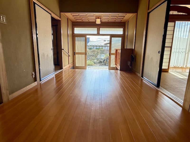 土地・建物共に広いのが最大の魅力。平屋ですが間取りは4LDK+S。思い切って構造体だけ残したスケルトンリノベなら、間取りの変更も可能。キッチンと和室の間の壁を取り払って広いLDKにすれば、使い勝手の良さに加えて2面彩光で明るく居心地の良い空間を作ることもできます。また建物南側は庭石などのある広いスペースで建物がないため全体的に日当たり良好です。東側にも庭があるので、芝生にしてもよし、花壇や畑にしてもよし、自然を感じられる暮らしができます。広さがありながらも物件価格が抑えられているので、大胆なリノベーションに予算を回すこともできそう。