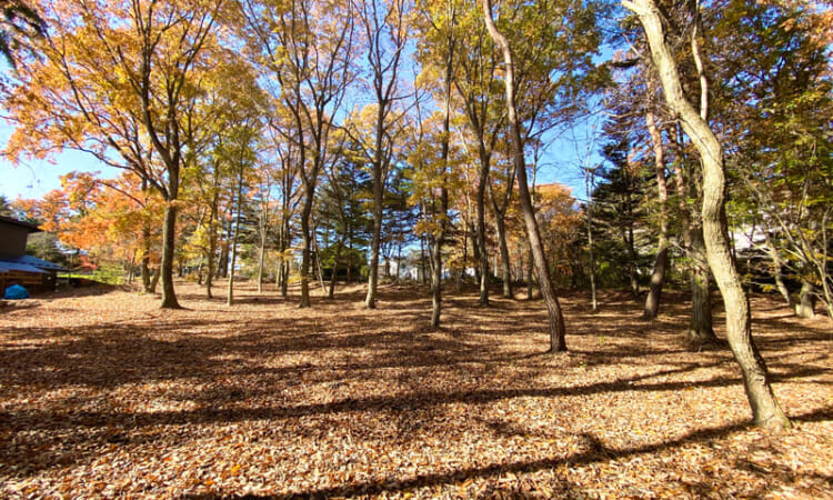 敷地内には広葉樹が自生し、周囲からの視線も気にならず、プライバシーがしっかりと確保できます。新緑の季節から秋にかけては色鮮やかな自然を感じながら、ゆったりと過ごすことが出来るのも特徴です。夏場は木々が日差しを遮る役割を担い、冬場にはあたたかな日差しがさしこんでくれるというメリットも。このあたりで195坪という広めの土地は希少なので、土地に自生する木々を活かした別荘建築にも、広さを活かして庭を広く設けるなど、コンパクトな土地ではできないゆとりをもった様々な設計・プランニングが可能です。