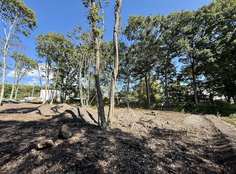 7軒の分譲地のうちのひとつ(区画B)なので、一気にご近所さんができるのも嬉しいところ。分譲地の中でもこの土地は、道路に挟まれた形の土地なので道路側2方向は隣の家の視線を気にしなくても良いですし、日当たりの良さも魅力。玄関や窓の位置などの自由度も高めです。この土地は約149坪。おおよそテニスコート2面分の広さがあります。家族構成にもよりますが、庭にガレージを作って愛車を愛でたり、DIYをしたりと趣味を楽しむスペースも余裕の広さ。分譲といえど、全部の土地がバラバラなのも面白いですね。他の方がどんな土地の使い方をするのか楽しみも増えます。