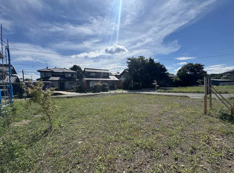 11区画整備されている宅地の1番入り口に位置する本敷地は、近隣の家と適度な距離感が保てるのも魅力のひとつです。こちらは「区画1」、北側に隣地が接していますが、南西側は道路が整備されているので、建物などで日当たりを遮られる心配はなさそうです。長方形で平坦な敷地は建築プランも立てやすく、カーポートを置いたり庭を作ったり、ライフスタイルに合わせて配置を考えてみるのも楽しいでしょう。