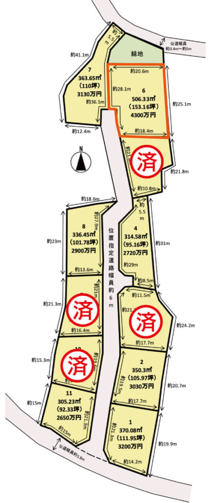 *「済」表示のない区画も、お問い合わせ時に成約済になっている場合がございます。その際は何卒ご容赦ください。