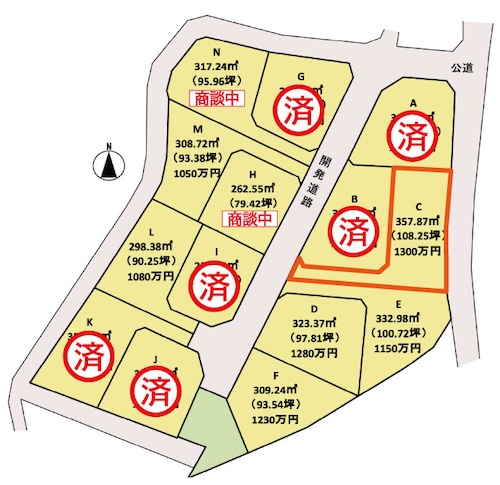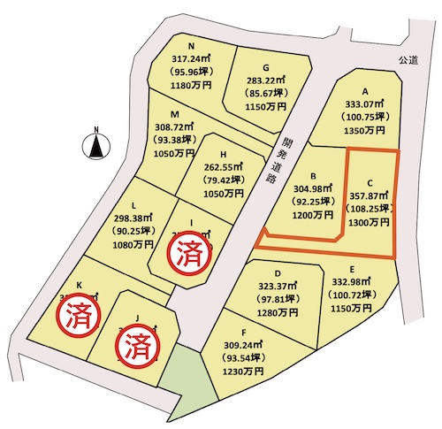 数年前から移住人気が続き、移住や2拠点生活など、さまざまなライフスタイルを叶える御代田町にある本物件。暮らしやすく整地された分譲地のなかの一角にあり、適度に人付き合いをしながら暮らせる立地です。分譲地の中心道路からは少し入った立地なので、人通りや車通りを機にすることも少なくすみそうなのが良いところ。適度な自然が残る環境で、気持ちよく暮らしを始められそうです。当物件「区画C」の総面積は約108坪。住宅地としては平均よりも広めですが、より広い敷地を希望する場合は、西隣にある土地も一緒に購入する選択肢もあるかもしれません。