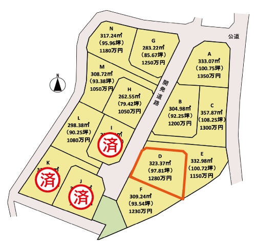 暮らしにちょうど良い区画割りの分譲地